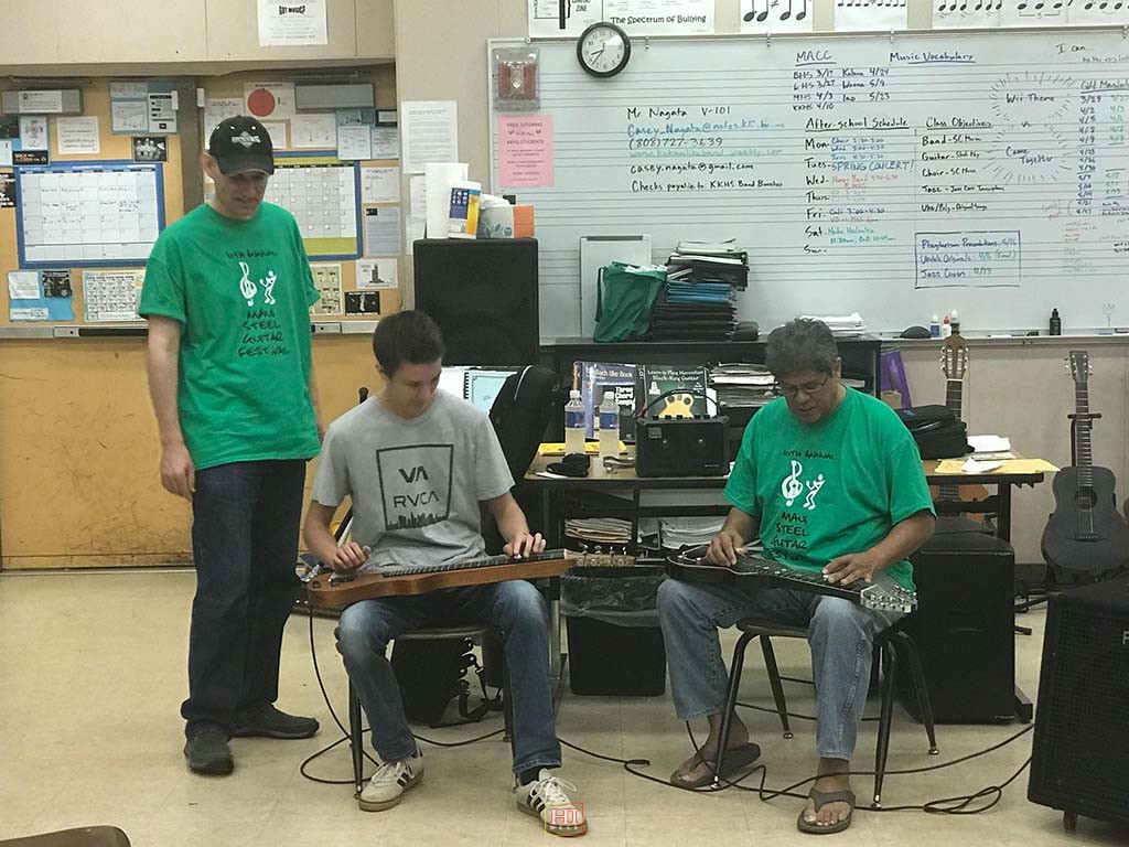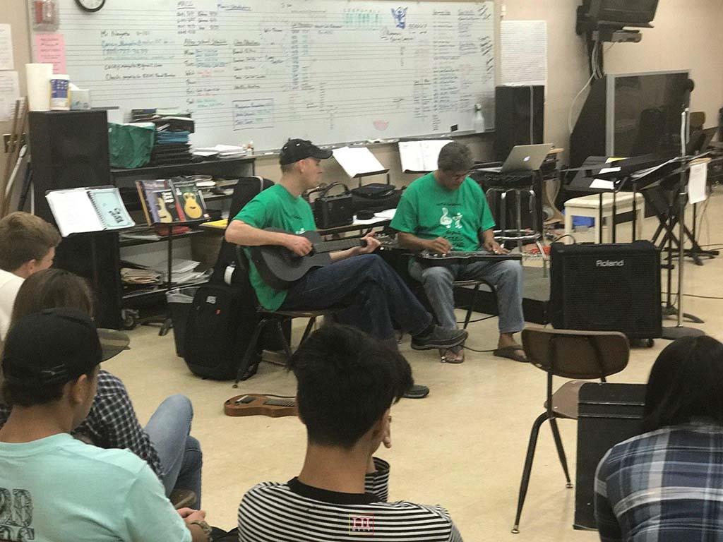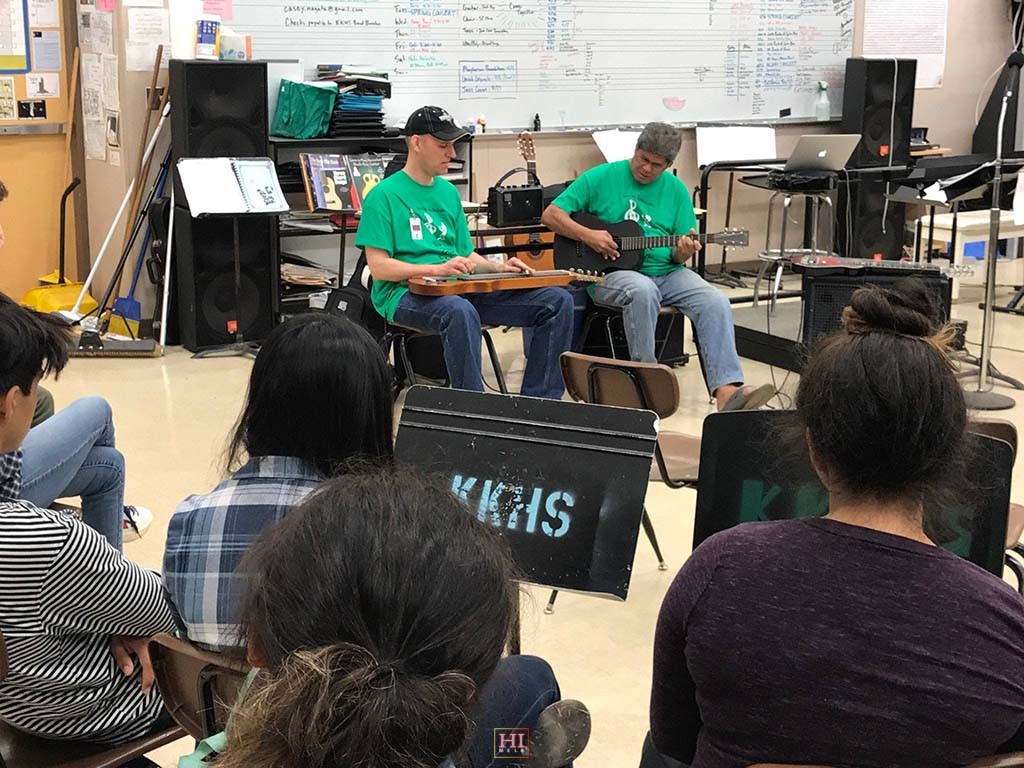 Photos of the King Kekaulike High School steel guitar presentation and demonstration.