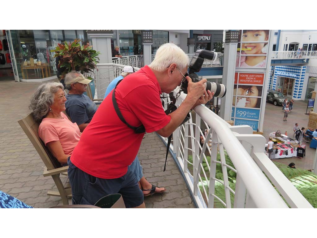 Photographer Don Touchi in action at the Queen Kaʻahumanu Center from his second story vantage point. Photo by Addison Ching.