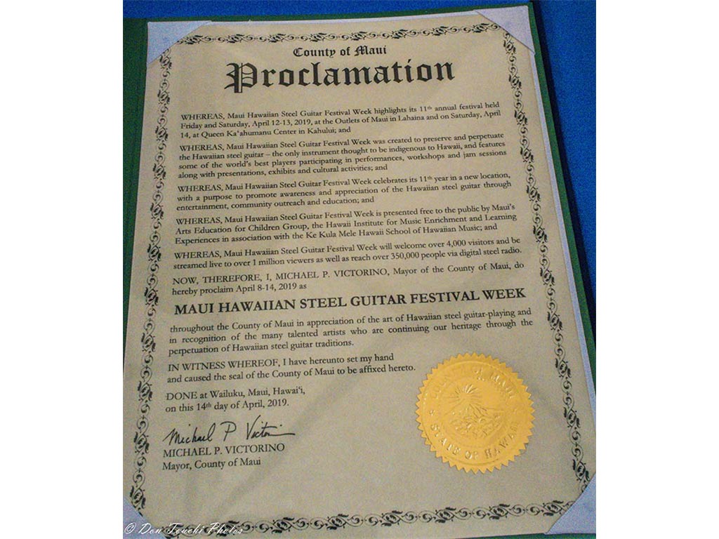 The proclamation presented to the festival by Maui County mayor Mike Victorino.