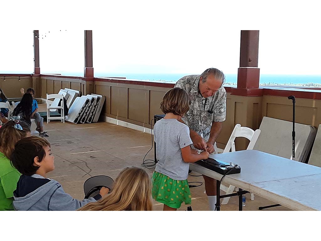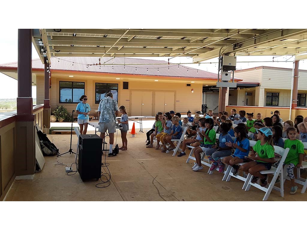 Presentation teams visited several Maui area schools to give students an introduction to the steel guitar and opportunities to try out the instrument. Daniel Tremblay visited Kihei Charter School.