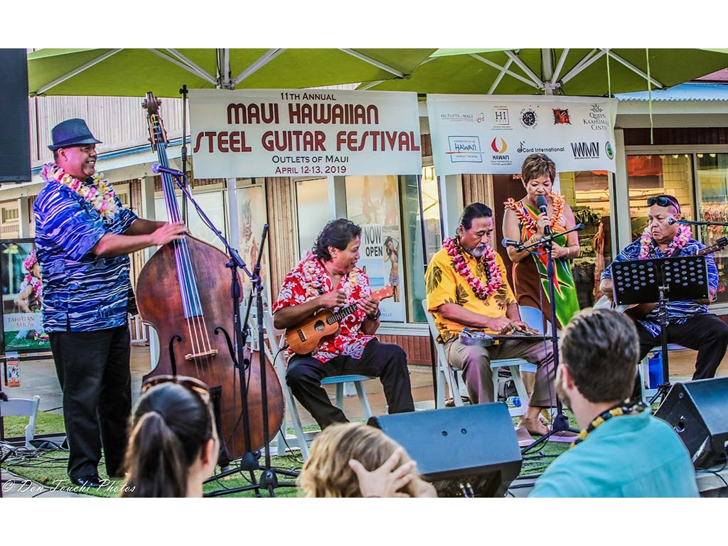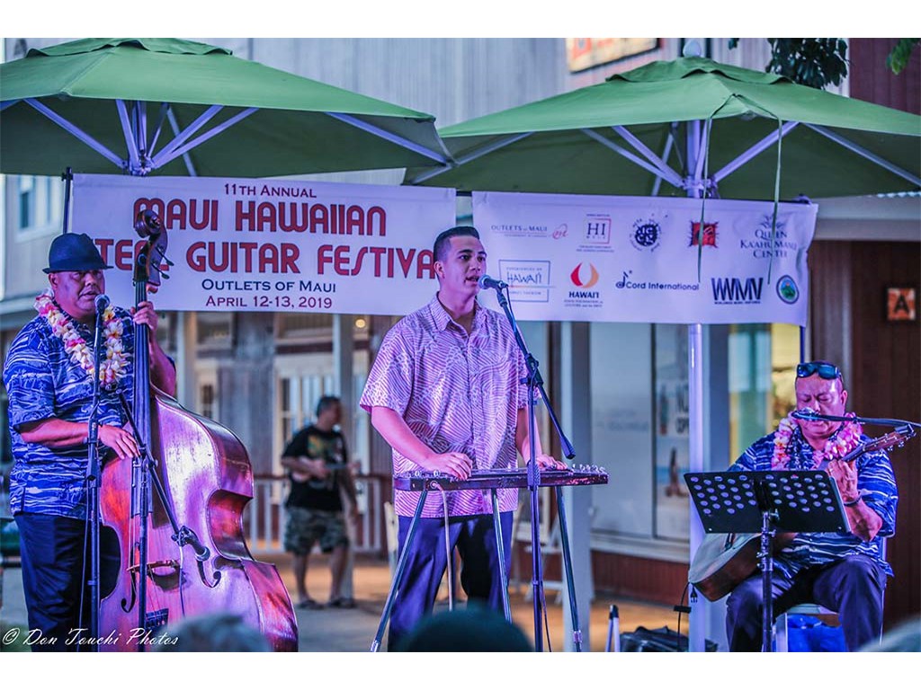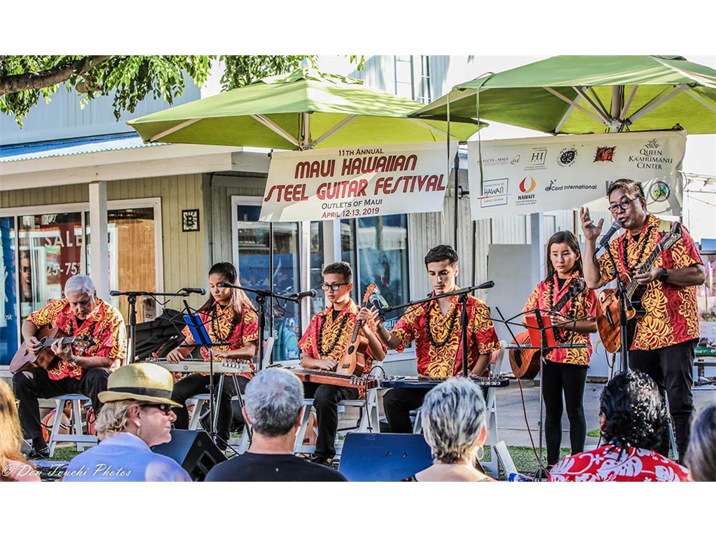 The Saturday evening main program was held at the Outlets of Maui outdoor stage and included NextGen steel guitarists and steel guitarists Geri Valdriz, Kapono Lopes, Alan Akaka, Greg Sardinha, and Bobby Ingano.