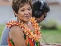 Kathy Collins intriduces featured steel guitarist Geri Valdriz, accompanied by Adam Asing, guest Bobby Ingano, and Kaipo Asing.