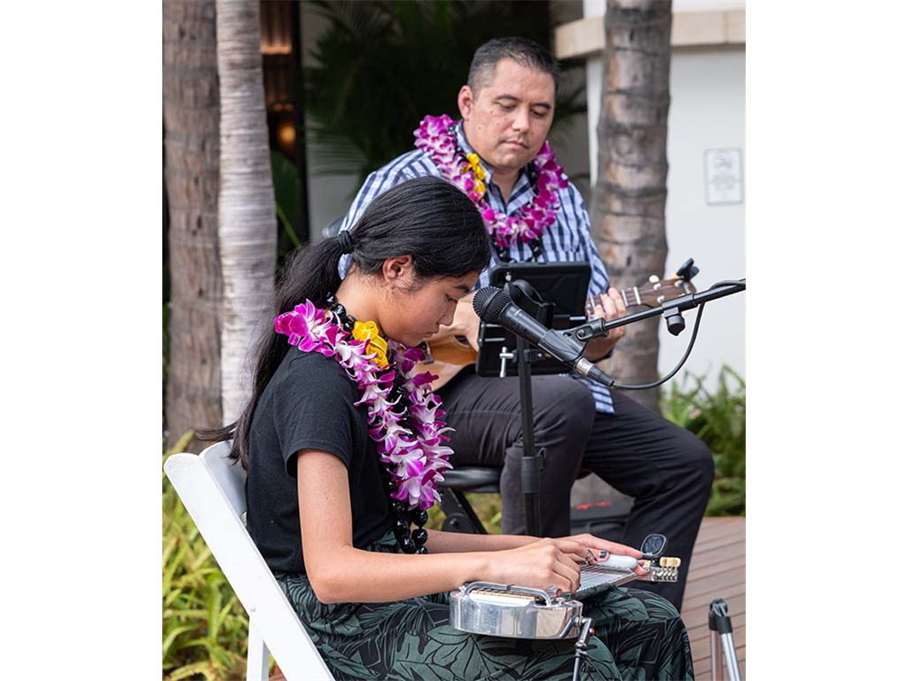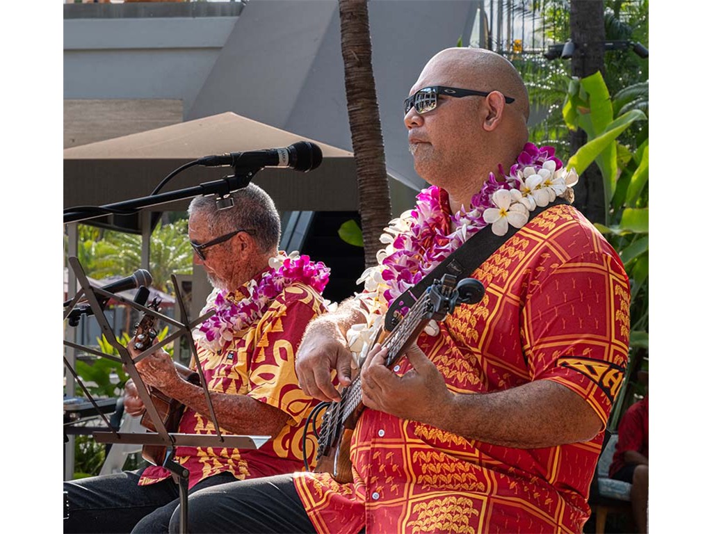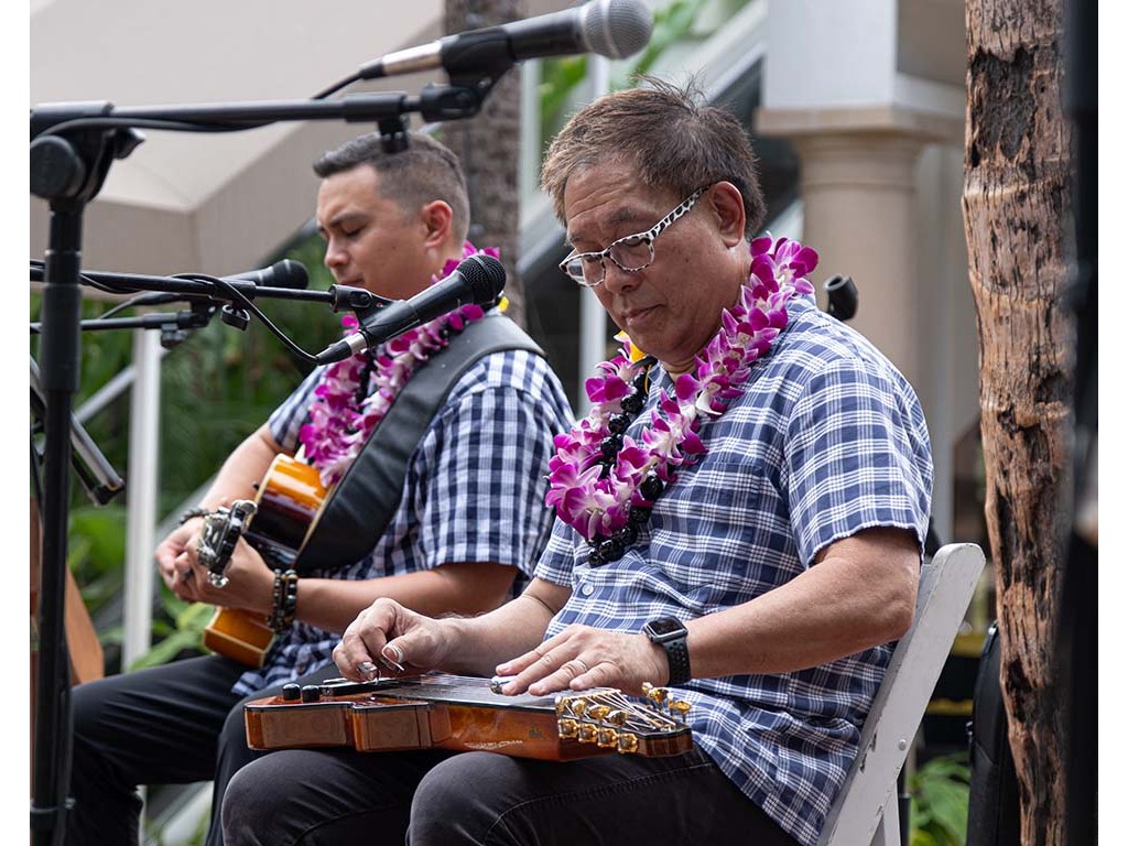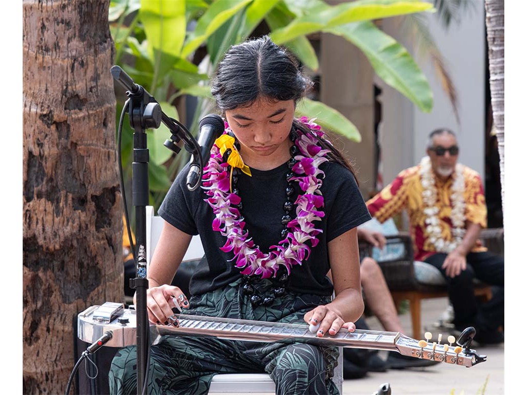 Saturday's Ho‘olaule‘a concert featured O‘ahu steel guitarists Alan Akaka, Devin Nakahara, Mālie Lymnan, Maui steel guitarists Joel Katz, Konapiliahi Lau, and Geronimo "Geri" Valdriz, and NextGEN steel guitarists Hiipoi Lindsey and Isaac Woodward. Backup musicians included David Woodward, Alan Akaka, Kaipo Lindsey, and Dylan Nakahara.