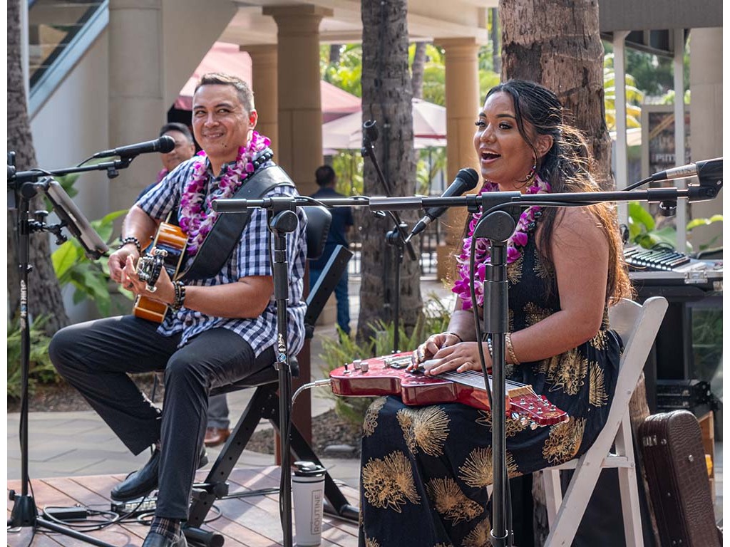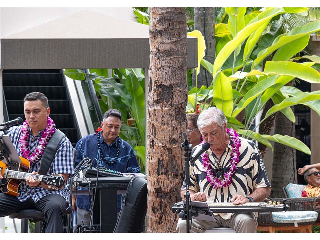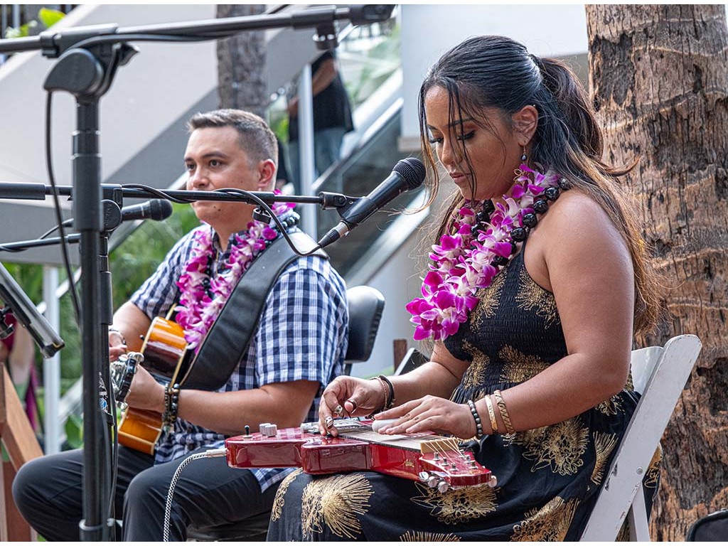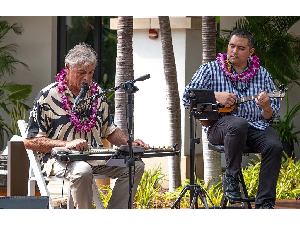 Saturday's Ho‘olaule‘a concert featured O‘ahu steel guitarists Alan Akaka, Devin Nakahara, Mālie Lymnan, Maui steel guitarists Joel Katz, Konapiliahi Lau, and Geronimo "Geri" Valdriz, and NextGEN steel guitarists Hiipoi Lindsey and Isaac Woodward. Backup musicians included David Woodward, Alan Akaka, Kaipo Lindsey, and Dylan Nakahara.