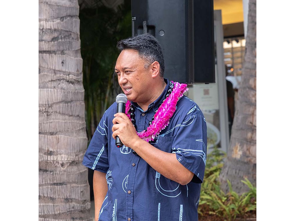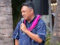 Emcee Monte McComber with Alan Akaka, David Woodward, and Dylan Nakahara.