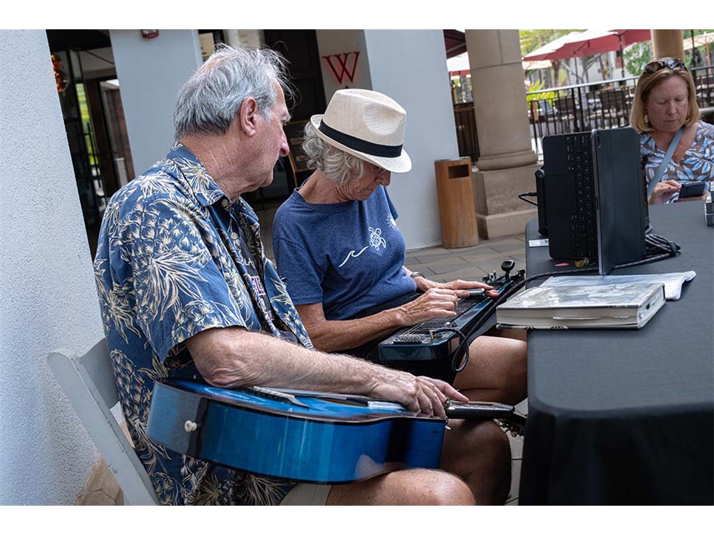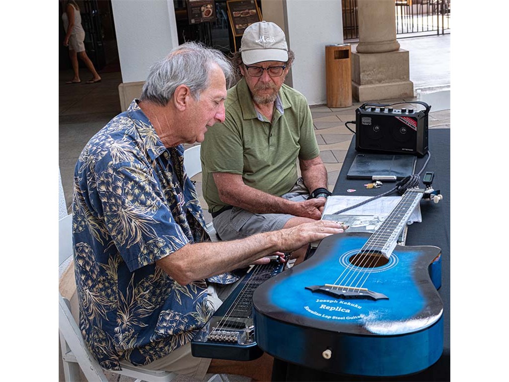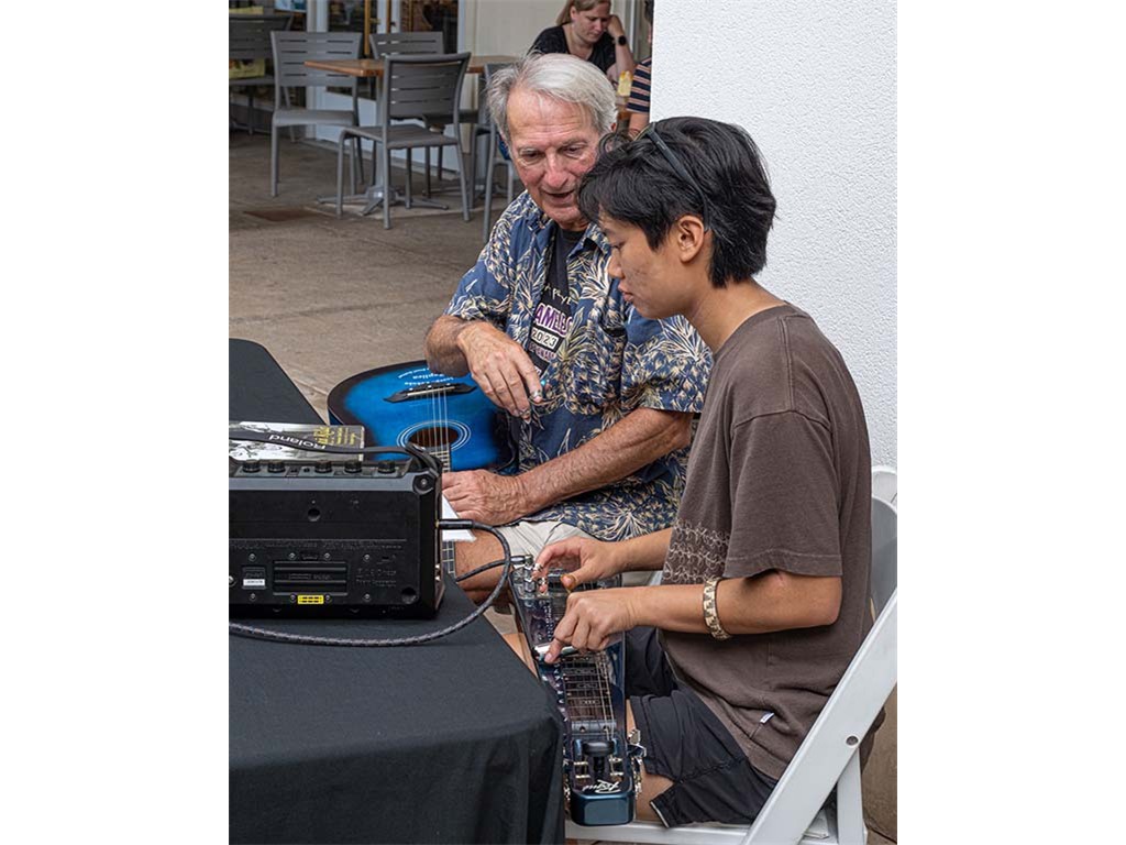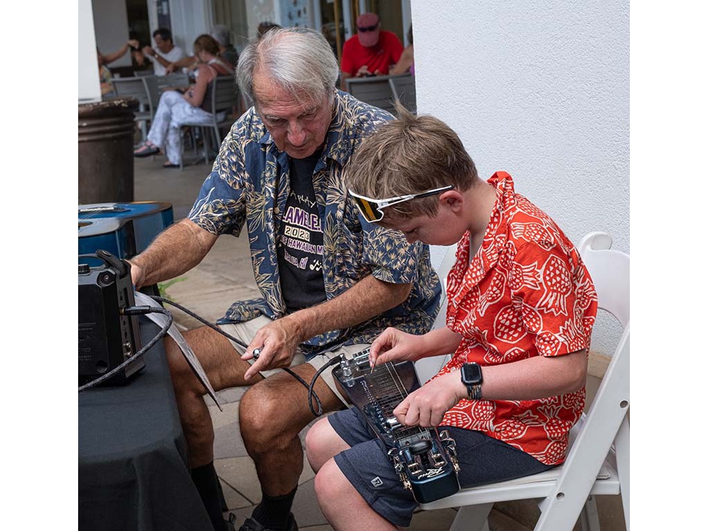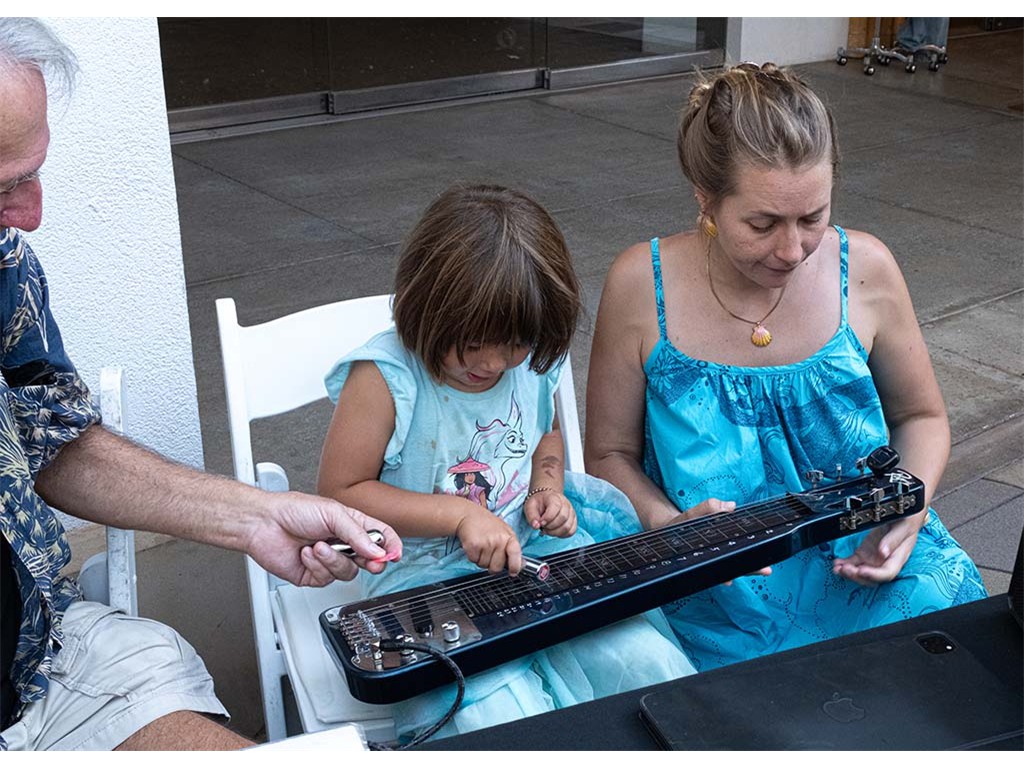 Another festival guest interested in learning about the steel guitar.