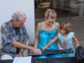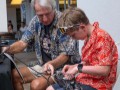 The hands-on experience table was very popular among festival guests. Dan "Danny Kila" Tremblay provided steel guitar information and hands-on training to those who stopped by his table.